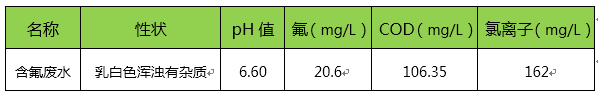 本公司是家大型的從事玻璃纖維系列制成品的生產(chǎn)及銷售,包括玻璃纖維紗、布、織物等,其污水主要為經(jīng)過前期降解COD、生化處理、反滲透回用等工序產(chǎn)生的濃水,現(xiàn)對該含氟廢水廢水進(jìn)行處理。