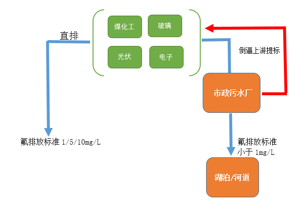 國家《污水綜合排放標(biāo)準(zhǔn)》排放標(biāo)準(zhǔn)中氟離子濃度小于10mg/L。地面水氟最高容許濃度為1mg/L。很多地方標(biāo)準(zhǔn)也規(guī)定氟離子濃度小于1mg/L。含氟廢水處理,成為了目前很多工廠的難題,很多工廠目前直排的標(biāo)準(zhǔn)都是要求氟離子濃度小于1mg/L,即使下游的污水處理廠能夠通過合并多股廢水的方式稀釋總排水的氟濃度,但各地區(qū)環(huán)保局紛紛對相對應(yīng)的污水處理廠提高含氟廢水的標(biāo)準(zhǔn)至小于1mg/L,進(jìn)而導(dǎo)致污水處理廠反過來限制上游的各類產(chǎn)生含氟廢水工廠只能排放比以往更低的含氟廢水。
