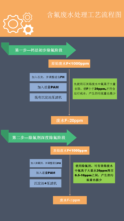 1.對于高濃度含氟廢水,加入石灰將廢水中氟離子降至20mg/L左右。