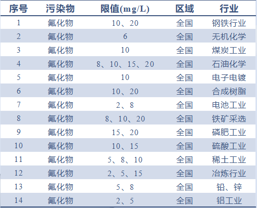 近年來(lái),對(duì)氟化物排放要求日趨嚴(yán)格,《生活飲用水衛(wèi)生標(biāo)準(zhǔn)》 氟化物 < 1mg/L,部分地方標(biāo)準(zhǔn)氟化物要求小于2mg/L,如山東《流域水污染物綜合排放標(biāo)準(zhǔn)》五大流域 一級(jí) 氟化物要求<2mg/L,二級(jí)氟化物要求<3mg/L。