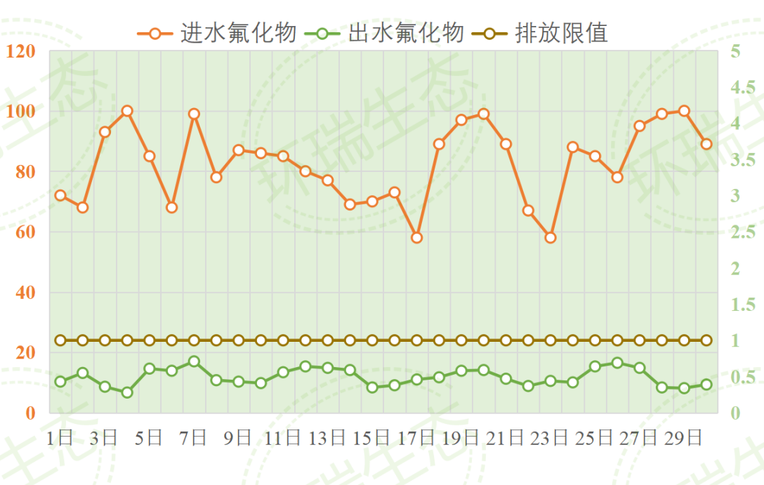 環(huán)瑞深度除氟劑處理后出水氟濃度 |