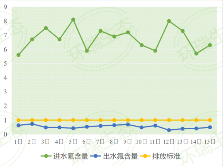 1、除氟效果好,某含氟礦井水需要達(dá)標(biāo)處理到1mg/L以下,經(jīng)過(guò)環(huán)瑞生態(tài)的深度除氟劑 數(shù)據(jù)如下所示: