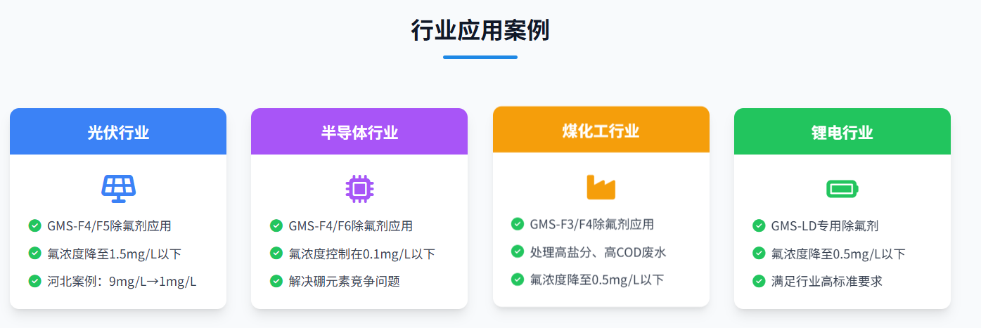 強(qiáng)吸附與離子交換的精準(zhǔn)狙擊機(jī)制環(huán)瑞通過(guò)多年的技術(shù)積累,開(kāi)發(fā)出了一系列高效除氟劑,如GMS-F3、GMS-F4、GMS-F6、GMS-F7等,針對(duì)不同濃度和類型的含氟廢水提供定制化解決方案。其核心優(yōu)勢(shì)在于: