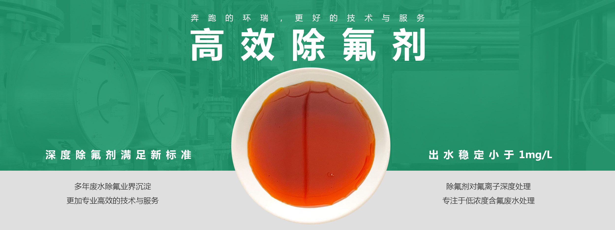 針對氟的超標問題,山東環(huán)瑞生態(tài)科技有限公司有專門的處理方法。針對不同濃度的氟的含量研究出高效除氟劑GMS系列,可將水中氟離子濃度降低到1mg/L以下,無需進行二次吸附不含鈣質(zhì),長期使用不會造成管道、閥體結(jié)垢、堵塞現(xiàn)象。絮凝體形成快、沉降速度快,較市面上其他產(chǎn)品處理能力大。
